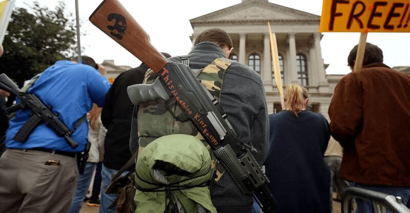 从此,关于个人持枪权利不可侵犯的“第二修正案”就有了两个不同解释。支持法案的一方认为,你个人持枪可以,但搞私人武装、啸聚山林就没法理了,因为《民兵法》通过后,民兵现在就是指国民警卫队;白人极右翼则坚持认为,人人都是民兵,个人持枪权利不可侵犯,你管我是不是组织?