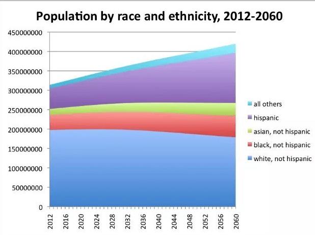 因为那种绝望恰恰是美国极右翼白人民兵运动的根源。随着美国外部霸权地位的消失,金融政治地位的下降,内部的贫富差距与内卷化趋势,底层白人在各方面的优势将会急剧流失,被其他族群所占领,而且不可逆。从总人口看,2014年白人占62.2%,但到了2060年,白人预计将只剩下43.6%。从18岁以下人口看,白人2014年就只剩下52%,到了2060年白人年轻人将彻底沦为少数。