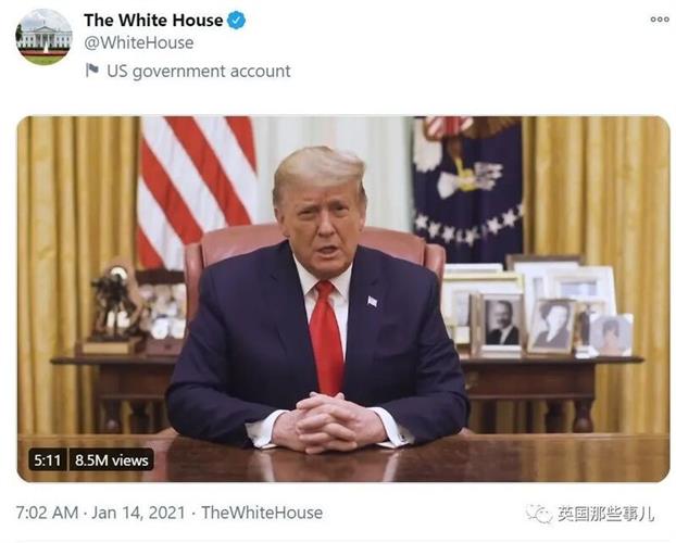 接着,因为他自己的账号不能用,就让白宫官方推特发了一段视频,罕见地严厉谴责骚乱者。