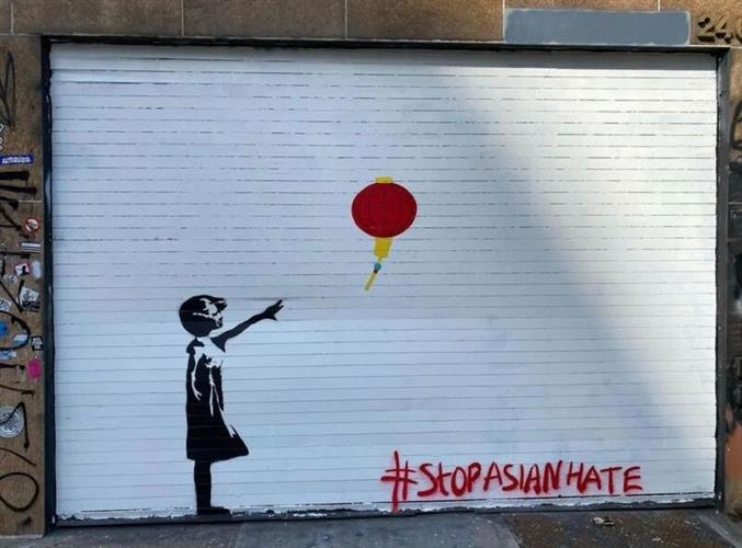纽约市街头的一幅涂鸦,上面写着:“停止仇恨亚裔”。