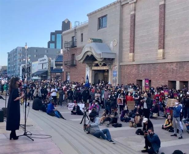 代表整个南湾社区的发言人一个接一个地站出来谴责仇恨犯罪案件的上升,要求变革的鼓声响彻圣何塞的市政厅广场。