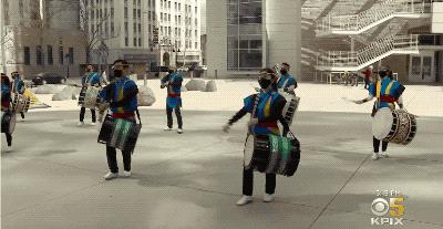 数百人聚集在日美国家博物馆的台阶前。