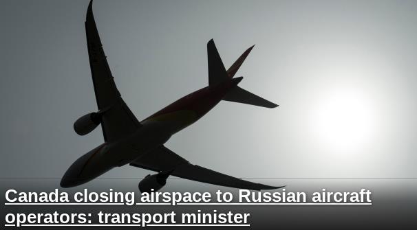 参考链接:https://www.ctvnews.ca/canada/canada-closes-airspace-to-russian-aircraft-transport-minister-1.5798027