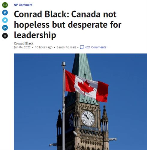 据《国家邮报》报道,加拿大公共政策智囊团弗雷泽研究所的特邀嘉宾康拉德·布莱克撰文称,加拿大目前已经挥霍掉前任所累计家财,亟需加强领导力,带领加拿大走出困境。