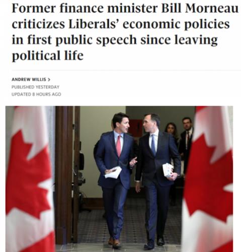 近日,离开政坛已两年的前财政部长莫尔诺(Bill Morneau)首次发表公开演讲,对联邦自由党的经济政策作出尖锐的批评,并提出了启动经济增长的建议。