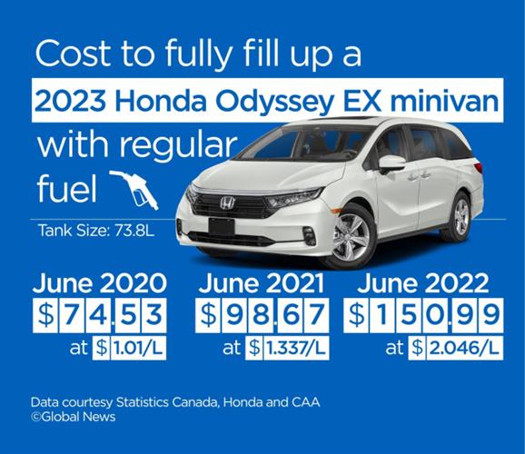 家庭用的minivan里,Honda Odyssey是最常见的一款。这款车的油升是73.8升,现在加满一箱要$150.99元,2021年6月是$98.67元,2020年6月是$74.53元。