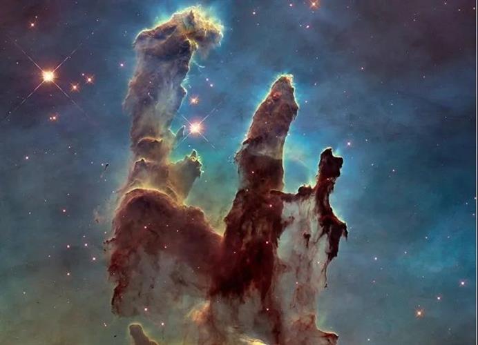哈勃太空望远镜拍摄的“创造之柱”的高清照片。 NASA、ESA、STScI 以及 J. Hester 和 P. Scowen(亚利桑那州立大学)/哈勃遗产团队 (STScI/AURA)
