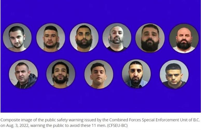 卑诗省联合部队特别执法队(CFSEU-BC)说,这些人都是警方确认的,与高水平的帮派和有组织犯罪相关的暴力事件有联系,包括最近在惠斯勒发生的两名男子被枪杀的事件。