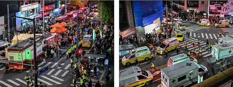 据韩联社报道,紧急服务部门接到梨泰院区民众的 80 多个电话,称他们呼吸困难。在首尔的主要聚会场所汉密尔顿酒店(Hamilton Hotel)附近的一条狭窄的小巷里,大批人群开始向前推挤,导致多人被压死。目击者报告说,参加派对的人非常混乱,一些人在经过一夜的庆祝活动后试图离开该地区。由于人挤人,有些人甚至无法移动四肢。