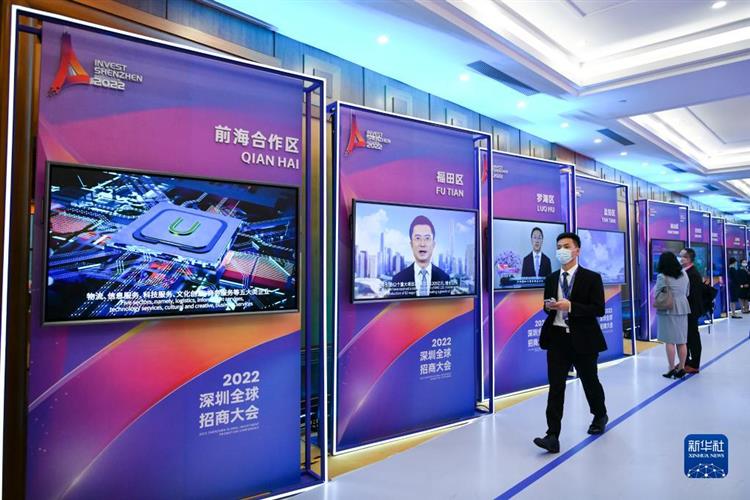 12月9日,2022深圳全球招商大会现场展示深圳各区招商视频。新华社记者 梁旭 摄