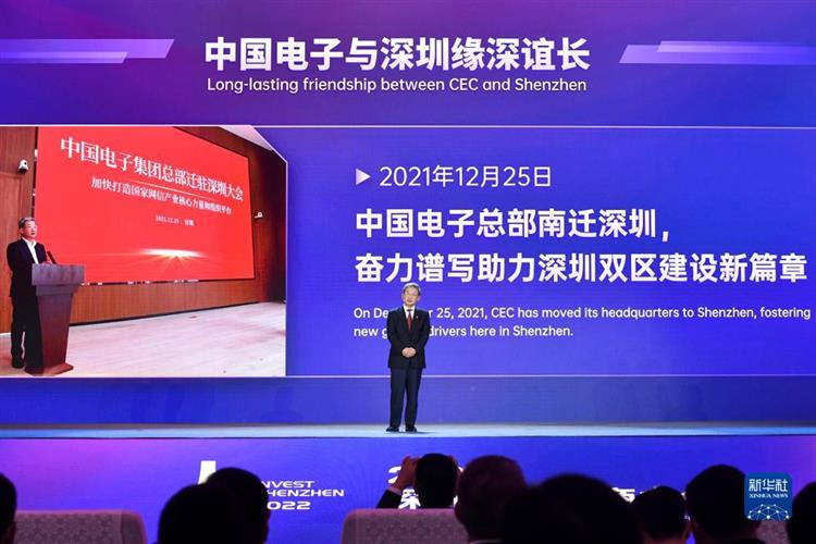 12月9日,在2022深圳全球招商大会上,中国电子信息产业集团有限公司董事长曾毅进行演讲。新华社记者 梁旭 摄