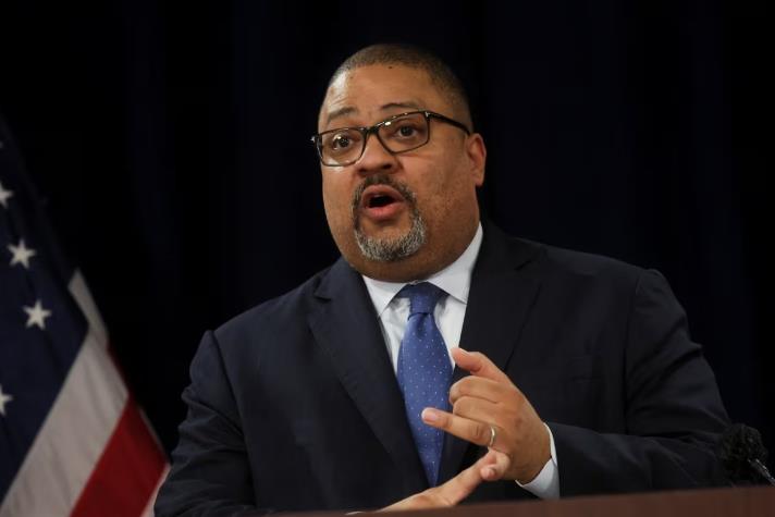 周二,纽约县地方检察官阿尔文布拉格在特朗普出庭后发表讲话。 (布兰登麦克德米德/路透社)