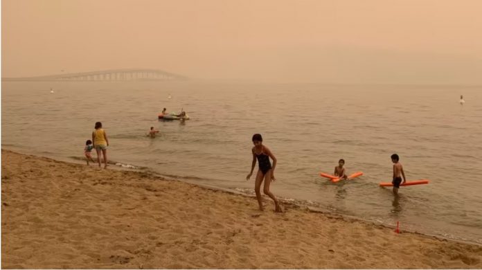 (2021年夏天基隆拿海滩一景,当时山火非常严重,影响整个卑诗省空气品质。)