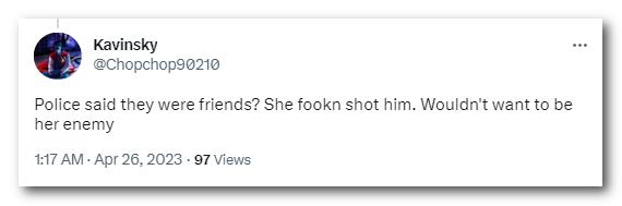 “警察说他们之前是朋友?她都朝他开枪了。可没人想成为她的敌人。”