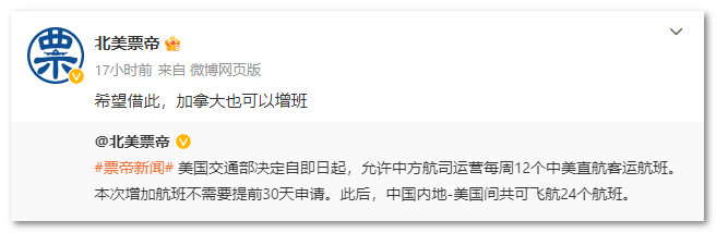 中美直航的消息传出后,很多网友开始期盼中加之间的航班也能够增加,以应对目前一座难求、一票难求的局面。