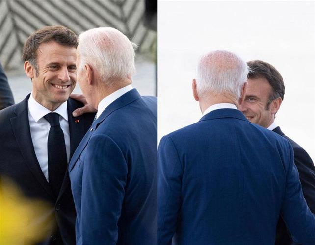 而从一些细节画面看,现年45岁的马克龙和现年80岁的拜登聊起天来真是忘我,而且还加上了不少亲密的肢体语言,呈现出了一种“忘年交”的友谊。马克龙看拜登时,满眼含笑,也顾不上鱼尾纹是不是太清晰了。