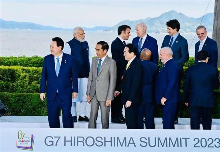 当地时间5月20日,在日本广岛举行的七国集团领导人峰会(G7),换了更大的会议室,因为还有8个受邀国的首脑以及6个国际机构的领导人,也都一起坐在了长桌旁,讨论共同关心的话题。