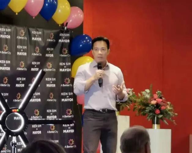 市长候选人沈观健在掌声和呼喊声中登台演讲,他着重阐述了他希望在2022年市政选举中执行的三项核心政策: