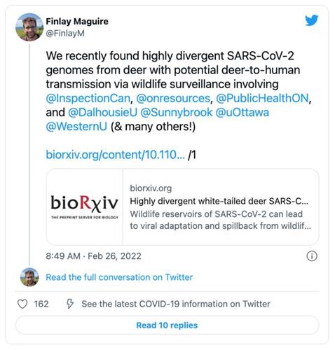 根据加拿大科学家团队的初步研究,病毒在鹿身上经过一轮又一轮的变异和繁殖后,传播回人类群体的事件可能已经在该国发生了。这项研究论文发表在2月25日的bioRxiv上。该组织详细分析了2021年某位猎人在安省西南部所获鹿的样本,以确定鹿是否能够将病毒传播给人类。