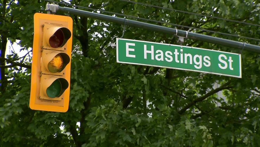 星期日晚上,温哥华警察局 (VPD) 和护理人员在市中心东区大楼外被弹丸枪击种,一名男子遭到拘捕。