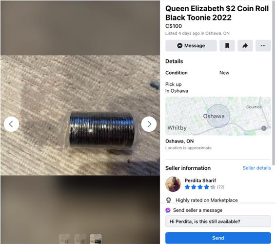 一卷特别版2元币正在以100元的价格从奥沙瓦出售。来源:脸书市场
