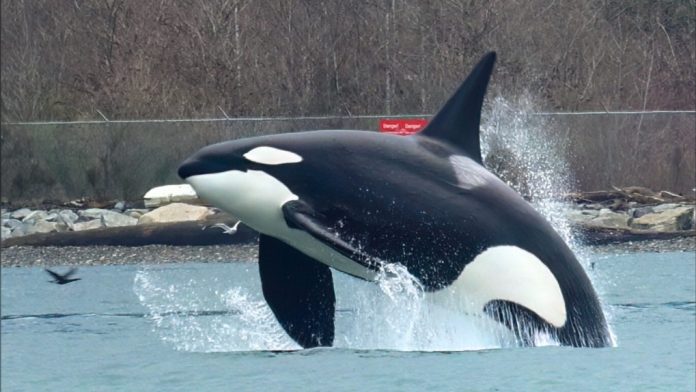 在温哥华史丹利公园海岸外寻找鸟类的野生动物摄影师却拍下了一张令人难忘的照片,是一头杀人鲸在布拉德湾(Burrard Inlet)跃出的瞬间。
