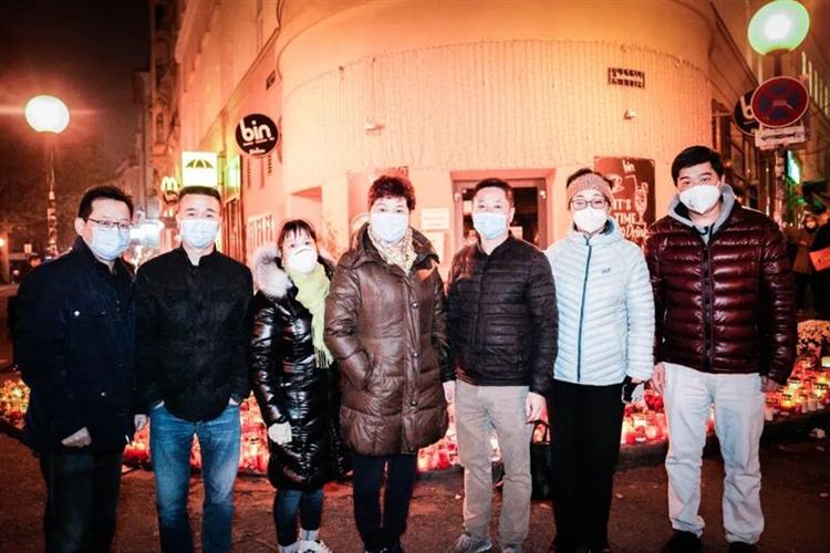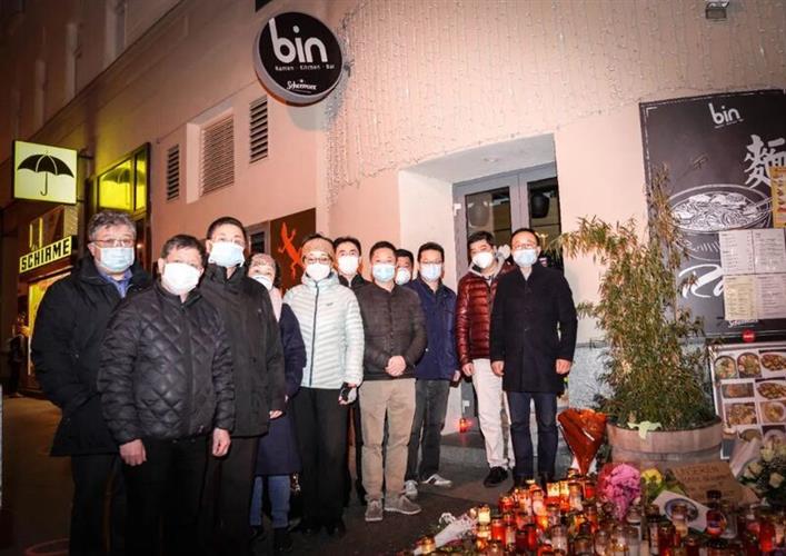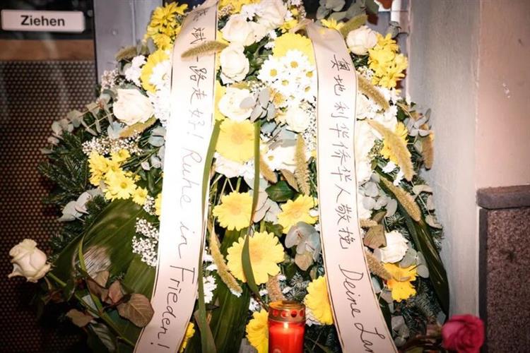 昨天下午,奥地利国会议员、侨界代表依然前往位于维也纳内城陈志彬遇害的餐馆敬献花圈,对他进行祭奠。