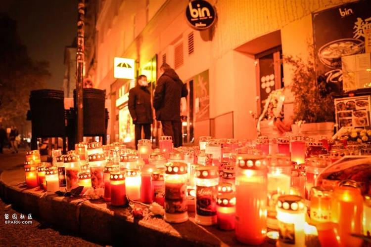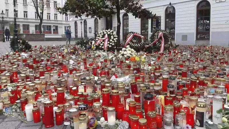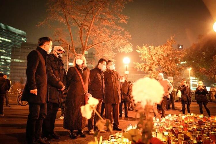 为了遵守奥地利防恐疫情二次封禁中的宵禁措施,悼念活动在昨晚8点前结束
