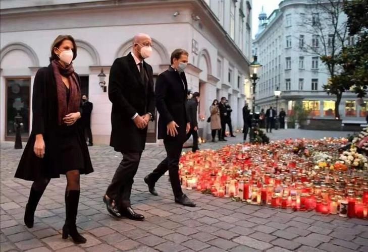 昨天,欧洲理事会主席埃德斯塔德勒•米歇尔访问奥地利,在奥地利联邦政府总理库尔茨和欧洲事务部长艾德施塔德勒的陪同下,前往维也纳1102恐怖袭击现场,吊唁遇难者