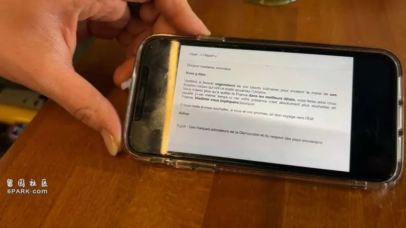 在里昂、巴黎又或是里尔,俄罗斯餐馆老板们在邮箱里发现了一些冷言冷语。在一封题为“离开”的信中,一位匿名者请他们离开法国。“弗拉基米尔迫切需要你的烹饪天赋来支持入侵乌克兰的俄罗斯军队的士气。你只需尽快离开法国,这样你将可以一石二鸟……因为在法国并不欢迎您这样的人,”匿名信作者这样写道。