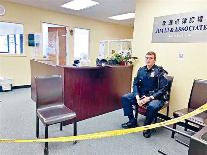 警方表示,昨天中午11点44分左右,法拉盛市中心39大道136-56号4楼的律师事务所中,张晓宁持两把厨刀捅向李进进的心脏和腹部。警方接到报案后赶往现场,发现李进进倒在血泊之中毫无反应和知觉。急救员对他进行抢救,再将他送往皇后区艾姆赫斯特医院,但最终重伤不治,在医院被宣布死亡。张晓宁在案发现场被捕,对她的指控正在审理之中。