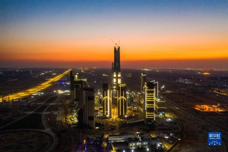这是2022年7月19日拍摄的埃及新行政首都中央商务区项目(无人机照片)。新华社发(中建埃及供图)