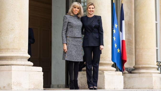 乌克兰第一夫人叶莲娜·泽连斯卡娅访问法国,会见了法国总统马克龙的妻子布丽吉特·马克龙。