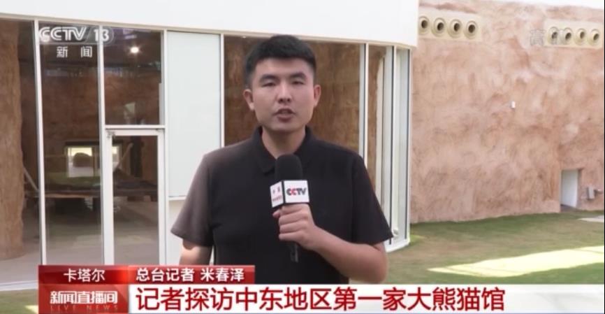 总台记者 米春泽:我现在正在中东第一家大熊猫馆内,这是卡塔尔为两只中国大熊猫专门修建的。在我身后是大熊猫的“卧室”,在“卧室”外是它日常活动的一座“客厅”,环绕在这座“客厅”周围有一条条的回廊。在这座大熊猫馆正式对公众开放后,民众能够站在回廊上与这座馆的“主人”两只大熊猫进行互动。