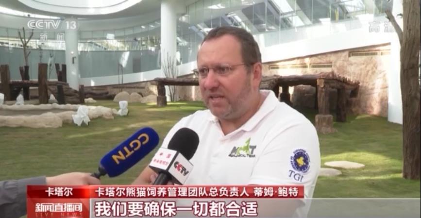 卡塔尔熊猫饲养管理团队总负责人 蒂姆·鲍特:我们要确保一切都合适,百分百的保障,温度、湿度合适。在大熊猫保护研究合作项目期间,中方专家也将不定期赴卡塔尔访问,考察大熊猫生活情况,并对卡塔尔工作人员提供支持。