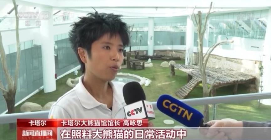 卡塔尔大熊猫馆馆长 高咏思:在照料大熊猫的日常活动中,除了喂食、清洁外,我们还和它们一起进行训练,使我们了解它们的健康状况。
