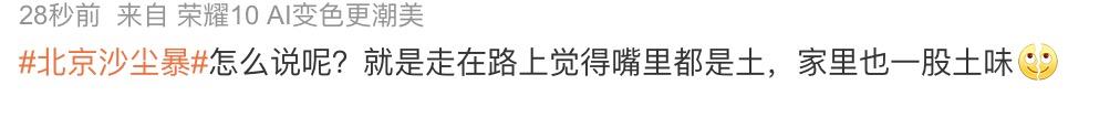 澎湃新闻(www.thepaper.cn)注意到,22日白天,“北京沙尘暴”、“长春下泥”、“天津沙尘暴”等话题陆续登上了社交媒体的热搜榜,各地的网友们纷纷晒出了自己对于此次沙尘暴袭来的感受:“怎么说呢?就是走在路上觉得嘴里都是土,家里也一股土味。”“感到无法呼吸。”……