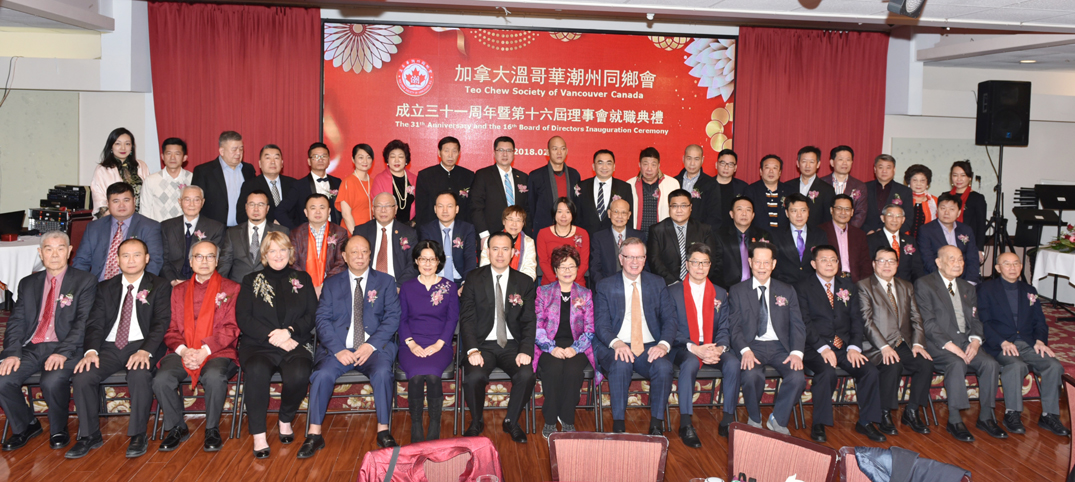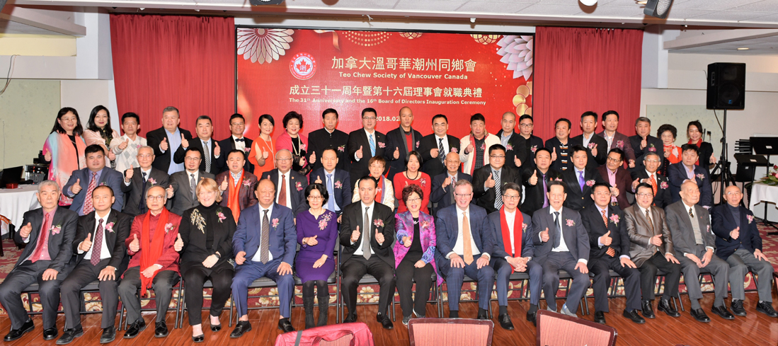 中國駐溫哥華總領事佟曉玲,加拿大國會議員、溫哥華潮州同鄉會永遠榮譽會長黃陳小萍,國會議員Cathy McLeod,BC省就業、貿易及科技廳長賴賜淳(Bruce Ralston),貿易省務廳長周炯華,兒童保育省務廳長陳葦蓁,省議員李耀華,溫哥華市議員、代市長雷建華,本那比市議員王白進,香港駐加西首席專員袁黃潔玲,中領館僑務組長胡啟全、領事鄭欣濤、王進,眾多本地華人社團負責人姚崇英、郭英華、鄭炯光、馬威廉、吳俊譽、朱展倫、馬清石、王文康、黃國裕、蔡宏安、陳若虛等和潮州鄉親300多人出席了慶典。