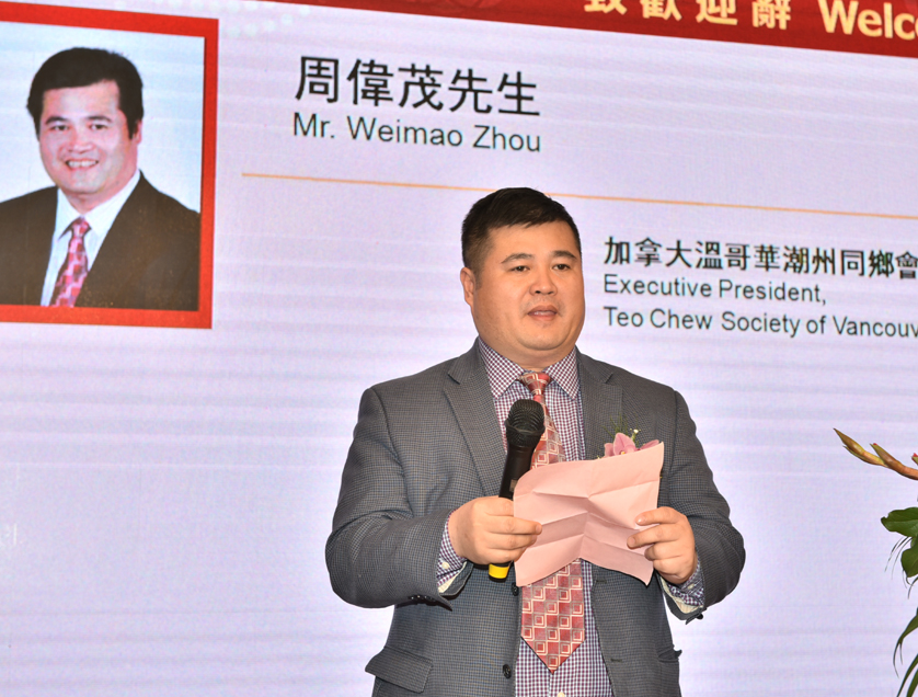 溫哥華潮州同鄉會執行會長周偉茂首先代表同鄉會歡迎大家的到來,他向大家簡要介紹了一年來同鄉會所做的主要工作,並向大家致以新春祝福。