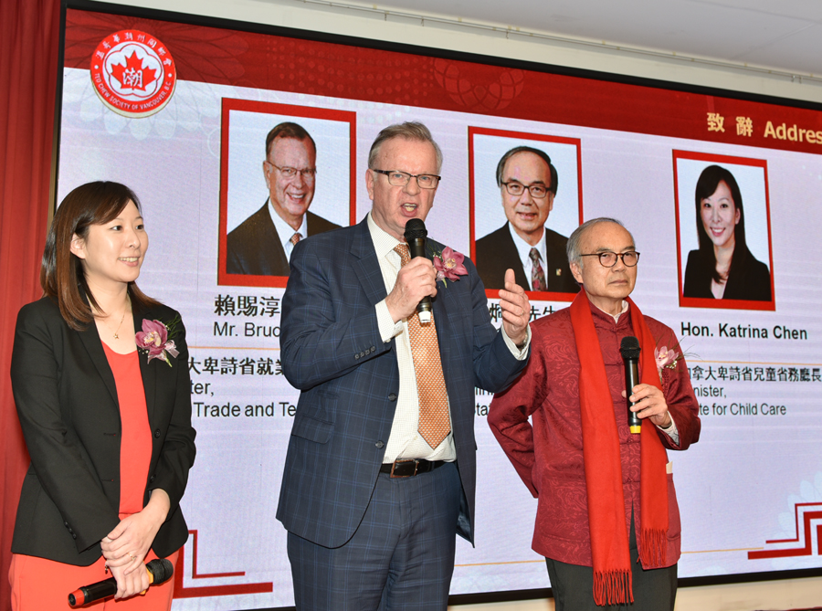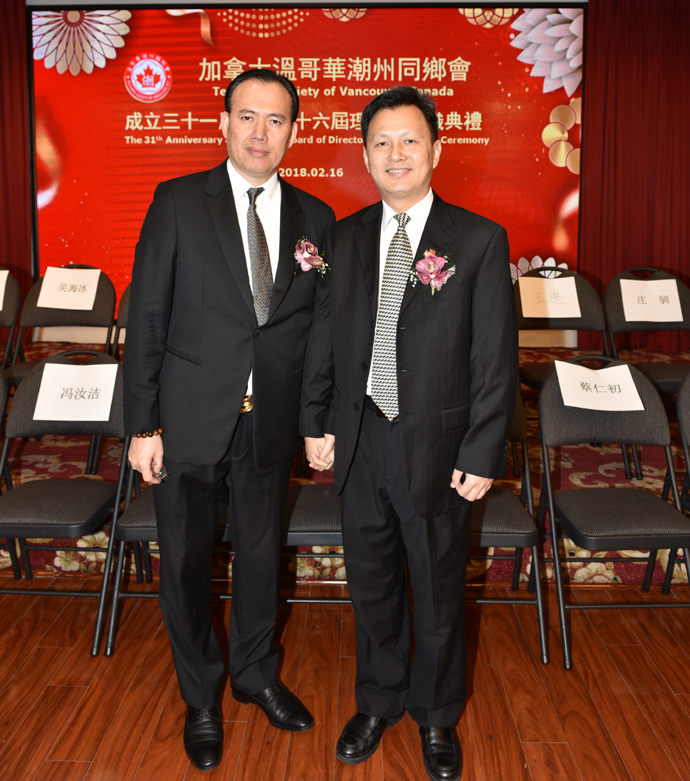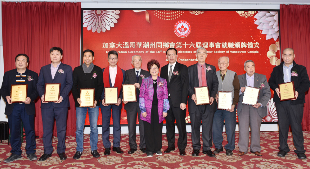 溫哥華市議員、代市長雷建華和本那比市議員王白進用英語和普通話祝賀新一屆理事就職,並高度讚揚溫哥華潮州同鄉會為本地社區所作的貢獻。