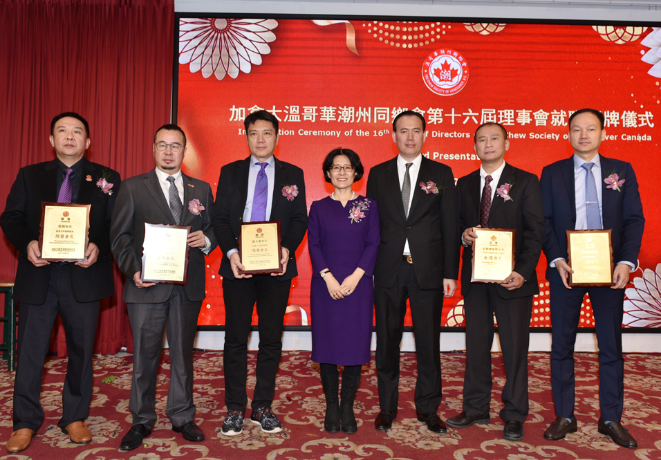 慶典活動中,佟曉玲總領事和加拿大三級政要為同鄉會理事會各成員頒發了就職狀,同鄉會還表彰了為同鄉會作出重大貢獻的人士,並為潮人下一代優秀的學子頒發了獎學金。