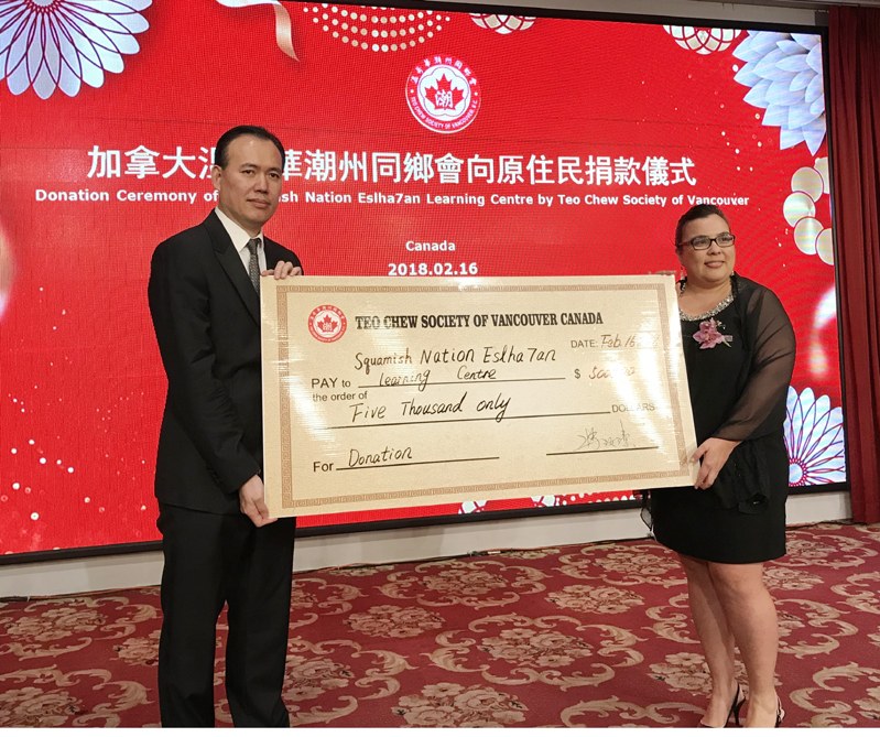 在慶典上,同鄉會還特別向原住民捐款五千加元,感謝他們對社區的貢獻。