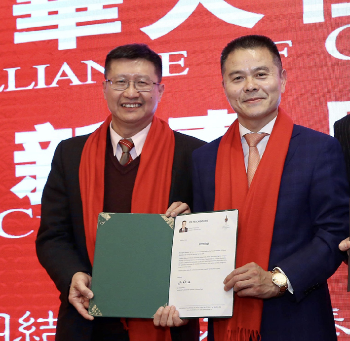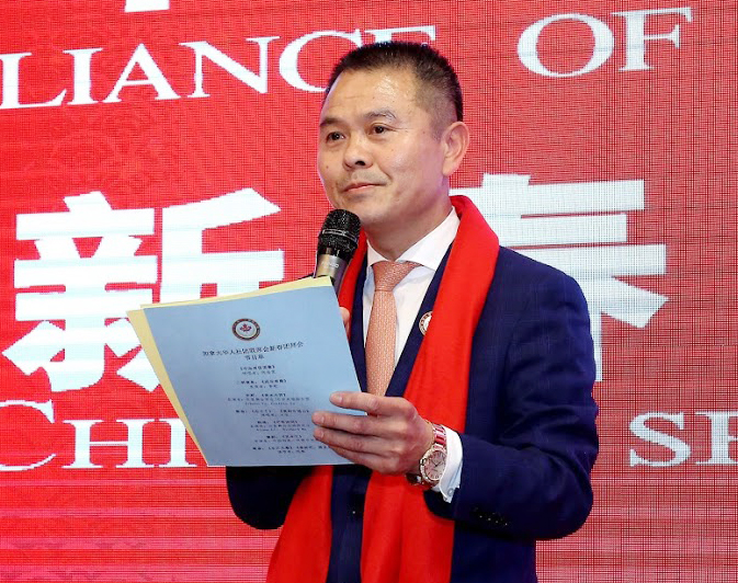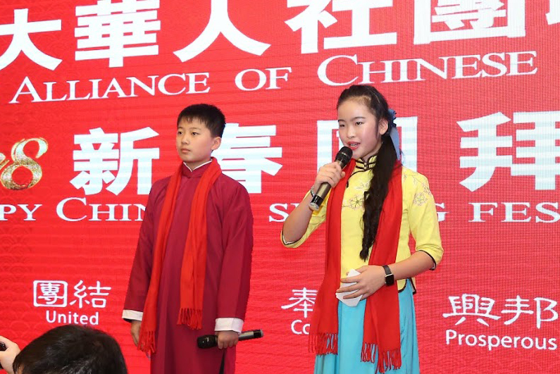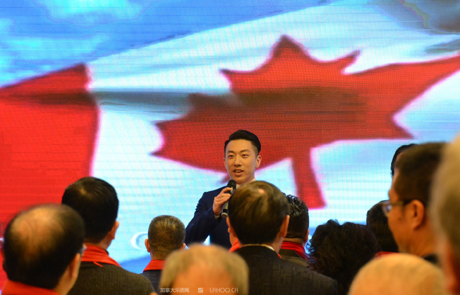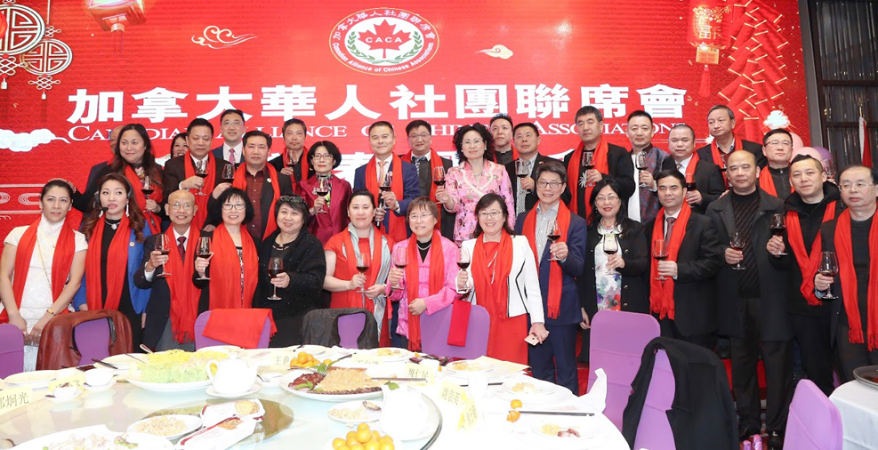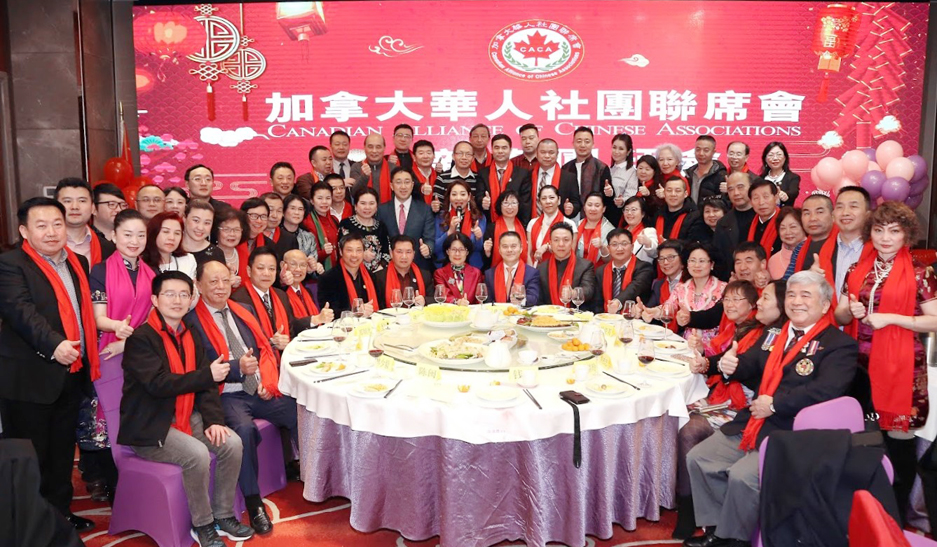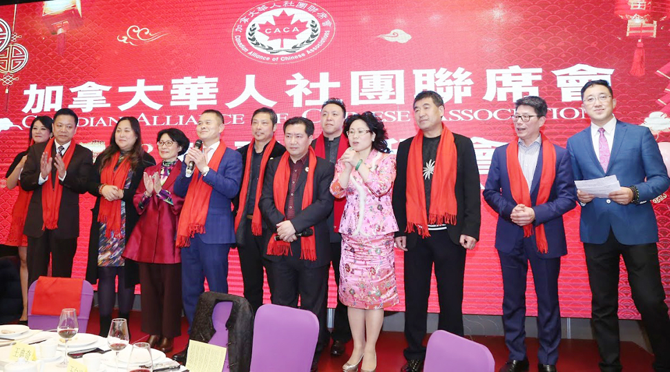 当晚,宴会大厅暖意融融、与会嘉宾笑语欢声。喜庆热烈的团拜会由温哥华金牌主持吴彤和吴瑾主持,著名歌手陈拾宽领唱加中两国国歌。