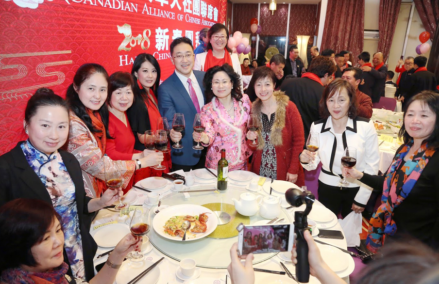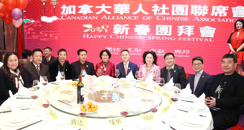 (本报讯)2 月14 日晚,加拿大华人社团联席会2018新春团拜会在列治文福满楼酒家隆重举行。中国驻温哥华总领事佟晓玲、侨务领事胡启全、郑欣涛、王进,本拿比市议员王白进夫妇、香港驻加西首席专员袁黄洁玲、加拿大华裔退伍军人协会会长邝杰雄等华裔老兵、温哥华中华会馆理事长姚崇英夫妇、全加洪门民治党总主委郑炯光、温哥华中华文化中心主席郭英华、中侨基金会行政总裁周潘坤玲、加拿大潮商会会长林少毅、副会长莊晓爚、加拿大国际经贸促进会会长郑小玲、中华会馆副理事长朱展伦夫妇、中华会馆秘书长王元珑夫妇、国会议员苏立道的助理黄启照夫妇、省议员叶志明的助理吴保华,加拿大华人社团联席会执行主席王典奇夫妇、执行副主席魏仁民夫妇,荣誉主席滕达、潘妙飞夫妇、褚远征、钱华、焦柏忠、廖子蔚、刘联伟夫妇,名誉主席林发辉、翁其方、徐旭红、王艺强、郑永和、刘朝方、黄谨、游兆丰、薛晓梅、曹卫红、徐凌、吉健、陈阿忠、徐洪,顾问郭亚欣、马在新、王化、吴冰、唐汉、陈龙,秘书长刘书梅、李卉,执委钟能辉、王秋燕、方素珍,监委曹振宇以及联席会共同主席及代表两百多人出席盛会。