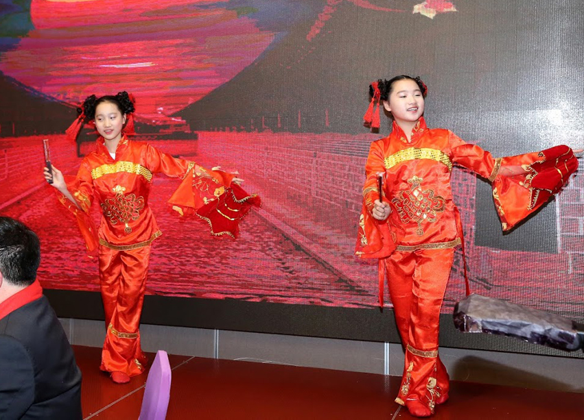 团拜会还奉上了一场精彩的高水平演出。著名二胡演奏家李歌演奏了《战马奔腾》,歌手大宝演唱了《忘不了》和《我的中国心》,歌手叶洪涛即兴串唱歌曲,著名女高音歌唱家张慧演唱了《长江之歌》《举杯吧,朋友》,中国国家一级演员赵艳演唱了豫剧《花木兰》。还有巨星舞台的小演员10岁的双胞胎女孩Athena Yu 和 Cynthia Yu的京剧《卖水片段》,以及Fiona Li和Richard Ma的《中华诗歌》等节目,个个精彩,大家掌声不断。演员们的精彩表演,让人陶醉。