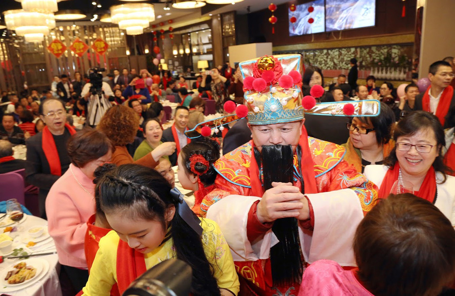 ? ? ? ? 在一片欢乐祥和的气氛中财神驾到,他一桌一桌向大家派发“金元宝”、恭喜大家发财,祝愿新的一年各项事业旺、旺、旺。