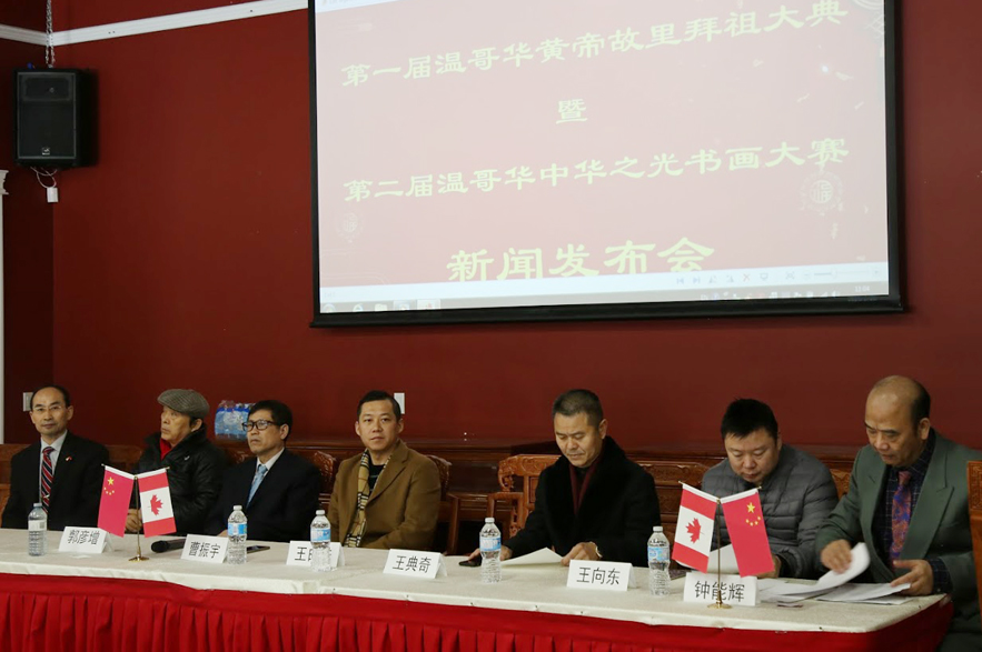 同时,第一届温哥华黄帝故里拜祖大典将于4月18日在大温哥华地区举行。温哥华中华会馆理事长姚崇英、加拿大华人社团联席会执行主席王典奇、加拿大河南同乡会会长王向东、加拿大多元文化促进会会长钟能辉、加拿大山西同乡会会长曹振宇、著名画家毕恭等出席新闻发布会。