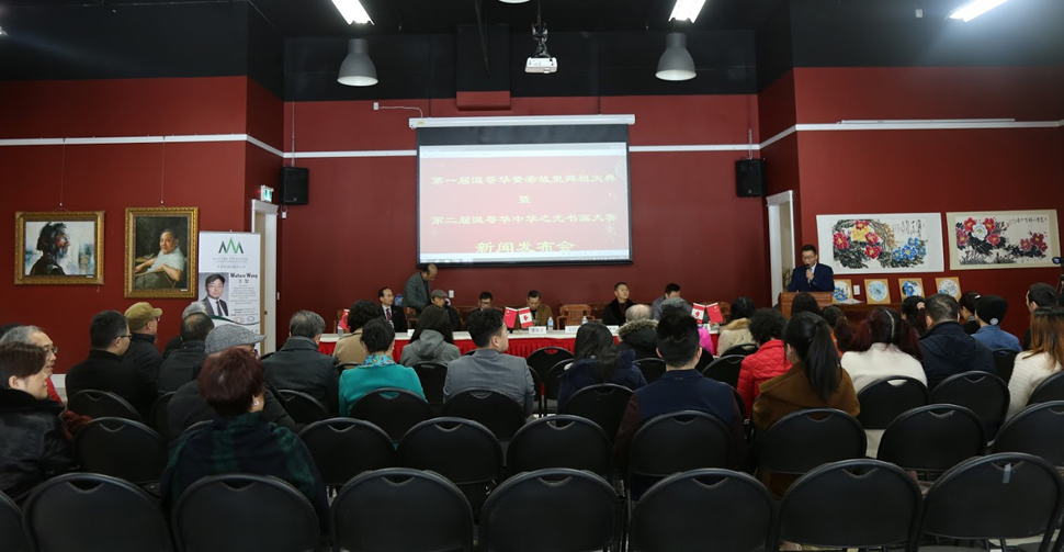 接着,发布会介绍国际书画大赛继承上一届中华之光书画展的精神,发扬中国传统文化的博大精深,也为广发艺术爱好者们提供更良好的艺术交流平台。此次大赛聘请了大温哥华地区著名书画艺术家周士心、郑胜天、顾小坤、王健、郭绍刚、李行简、张恒作为荣誉顾问。大温地区著名画家毕恭、吴荣添、夏雷、常露、王鹤翔,美国著名牡丹画家江宜桥等十多位画家积极参与并担任各分组评委。