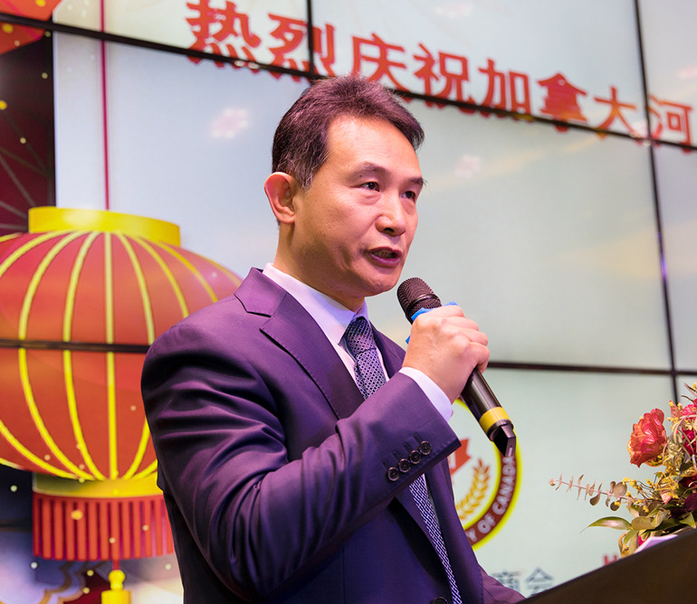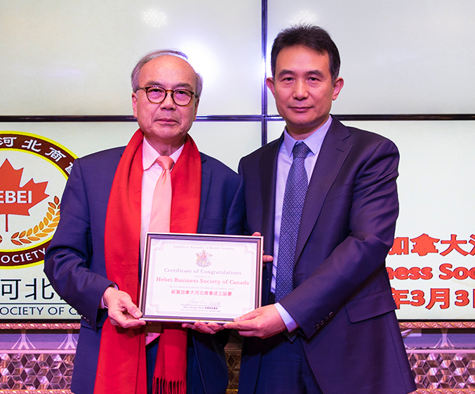BC省贸易省务厅长周炯华在讲话中代表省长贺瑾(John Horgan)祝贺商会成立,他赞扬加拿大河北商会成立恰逢其时。他谈到年初刚陪省长访问了广州和北京,广泛接触了中国相关部门。他说,BC省和中国经贸和文化交往频繁,希望在新的一年和大家一起推动加中经贸进一步发展。