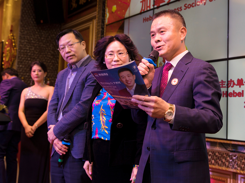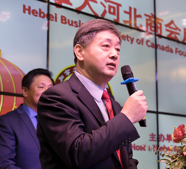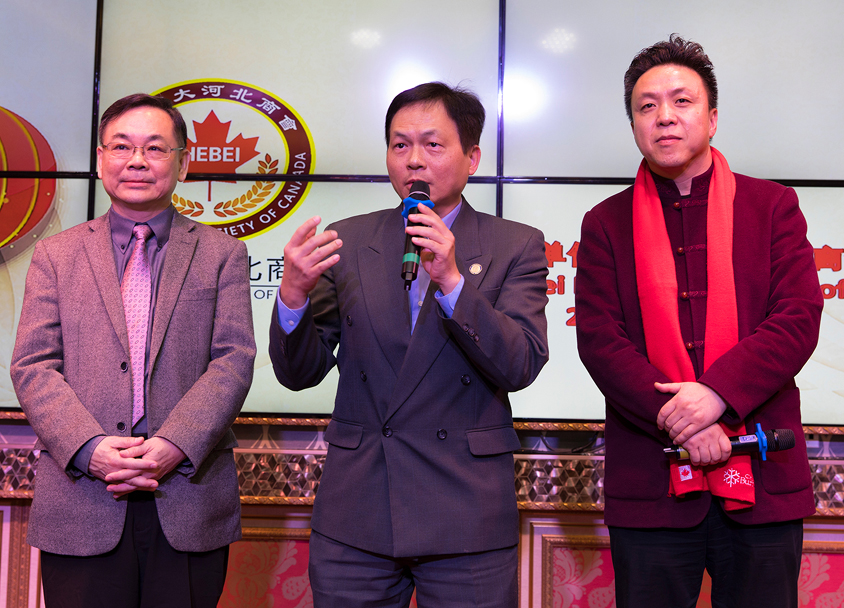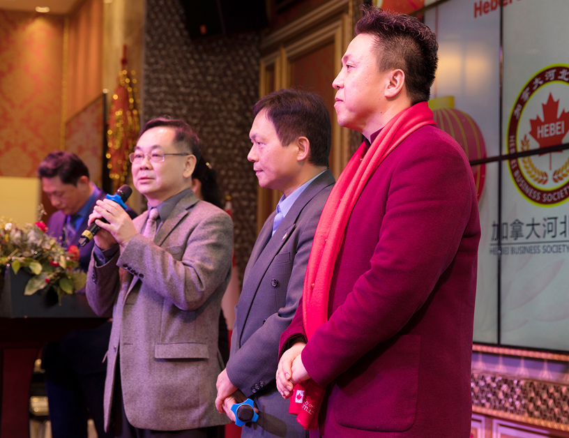 加拿大河北商会首任会长岳辉首先致辞,他向与会者送上新春祝福。他说,经过近两年时间的酝酿,去年8月开始筹办到今天加拿大河北商会正式成立。加拿大河北商会是厚积薄发,是河北企业家在加拿大成长发展日益壮大和成熟的标志。目前很多会员都是在加拿大创业,其中保健品、高科技、工业园区、电动车、矿产、地产及农业生产项目已初具规模,近年来投资移民增多,资产投资及资金实力不断增强,大家渴望成立商会寄托乡情合作共赢。